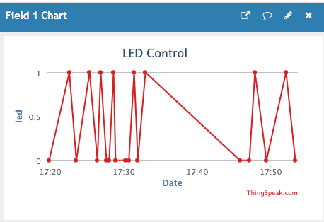 After a couple of changes to the “field1” value, you should see some data in your chart! The data represents the time the LED status changed and the status it was changed to.