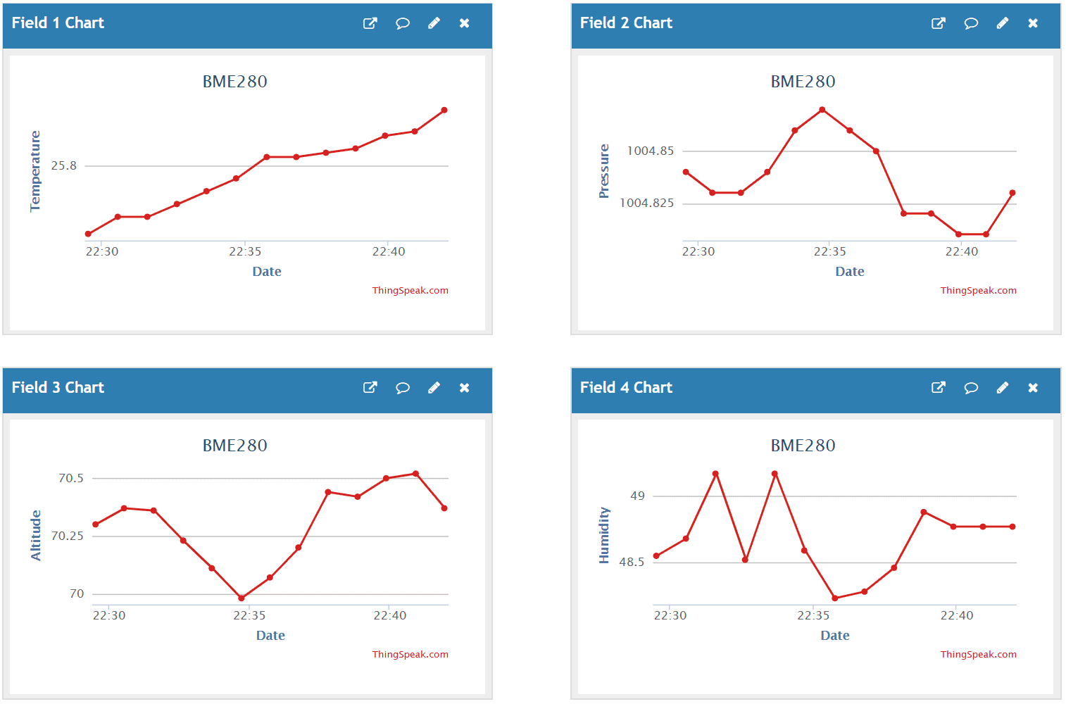 String url = serverName + "&field1=" + temp + "&field2=" + pres + "&field3=" + alt + "&field4=" + hum; // Define our entire url